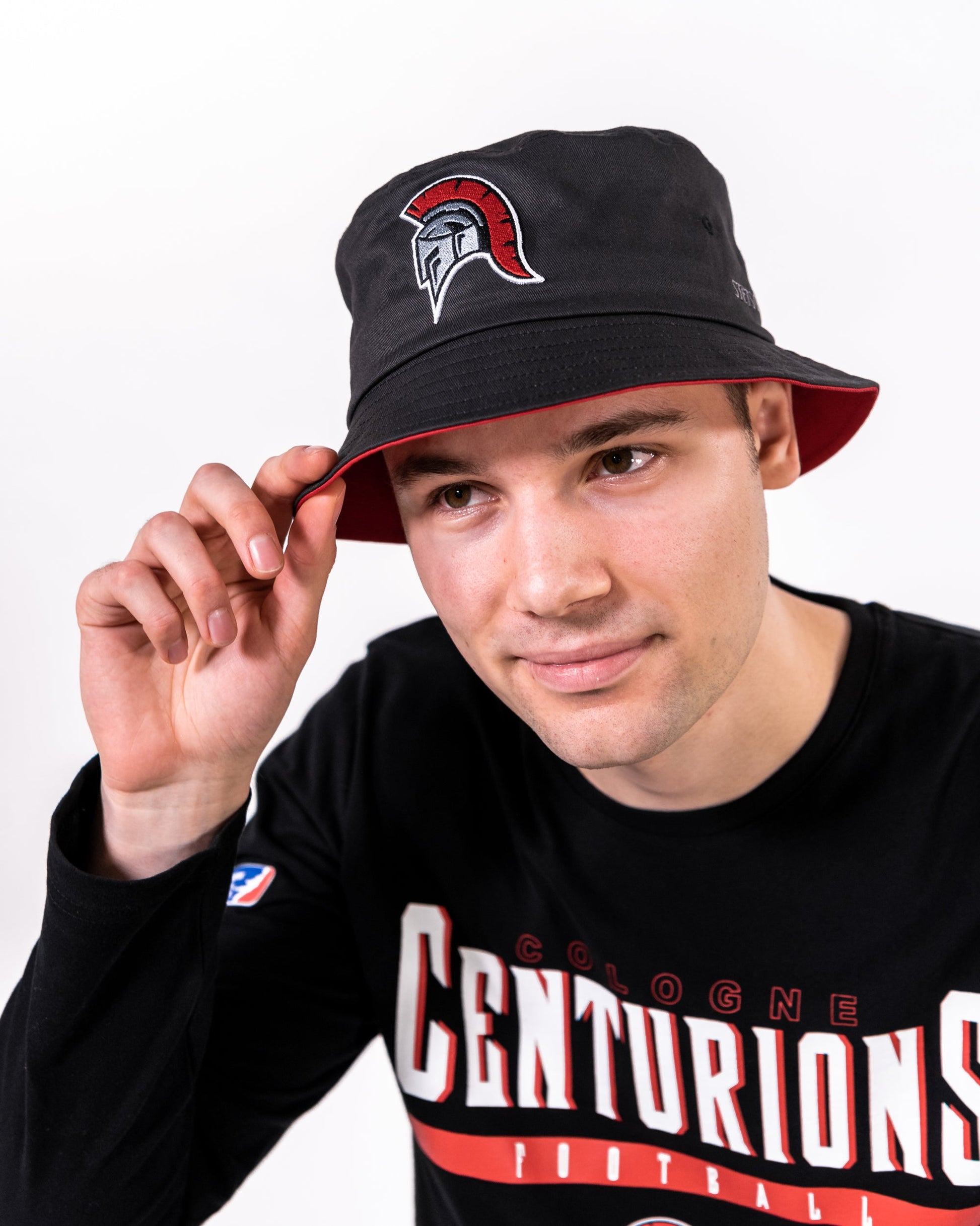 Das ikonische Cologne Centurions 3D-Sticklogo auf der Vorderseite zeigt deine Verbundenheit zum Team, während das European League of Football Logo auf der Rückseite das offizielle League-Produkt bestätigt. Der klassische schwarze Bucket Hat mit rotem Schirm verleiht dir einen coolen, sportlichen Look.