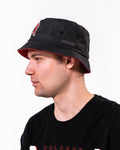 Schwarzer Bucket Hat mit rotem Schirm
